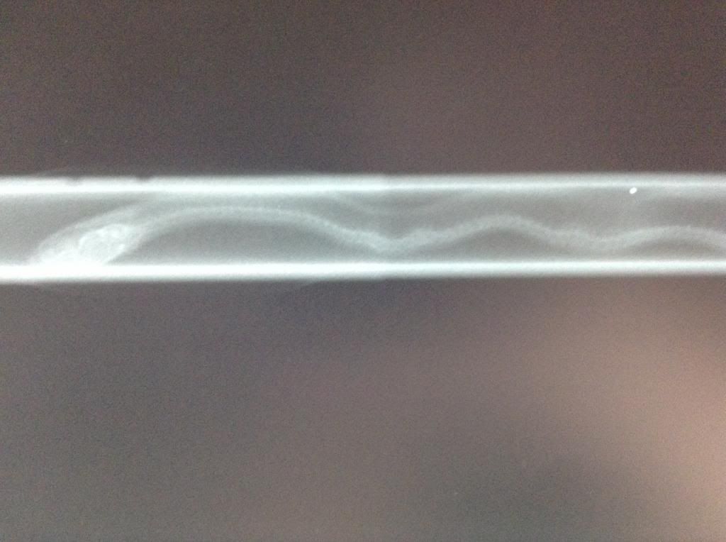Even though he was scrunched up in the tube, you can clearly see where the kinks are :( poor little guy...my boss looked at 'em and thought he might (maybe) already be developing arthritis...wouldn't surprise me with kinks like that...