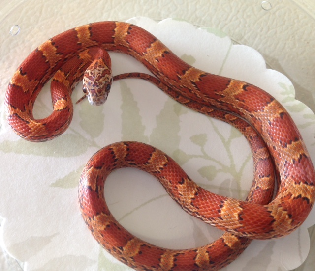 2014 female Sunkissed Blood for sale. I am holding back one, letting this one go for $250 which includes shipping. Possibly het amel as well. Shipping via FedEx overnight.