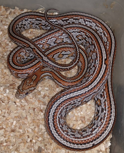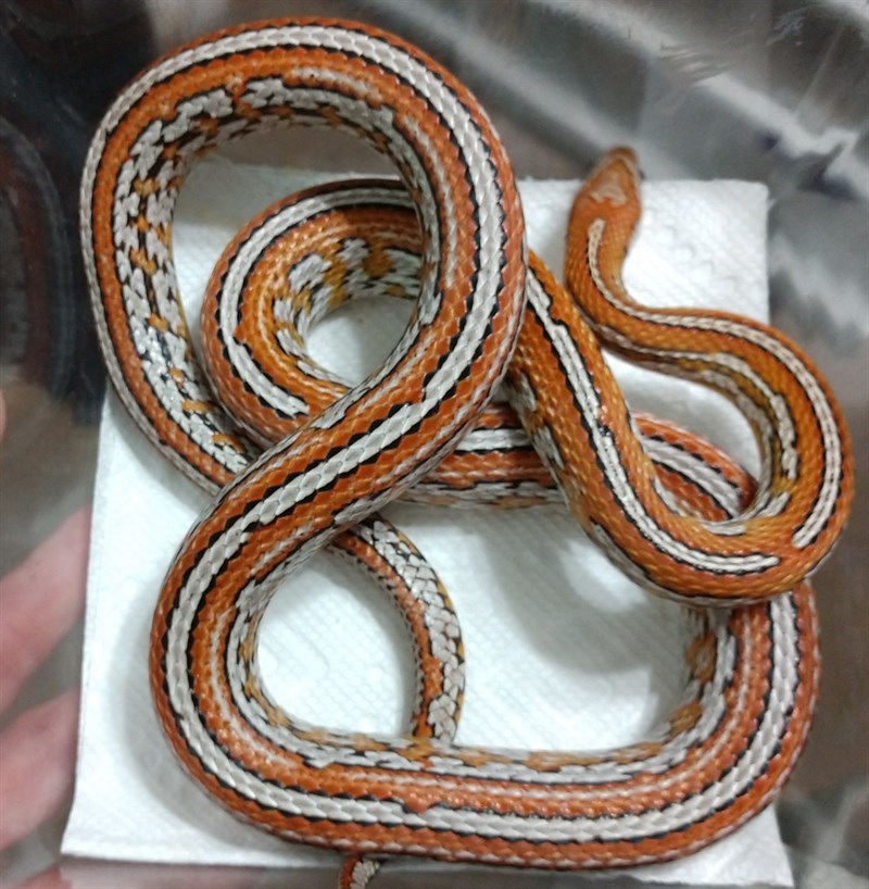 There is Amel and stripe in her line, but I did not test her side for it. The dam was possible het Amel, Motely. She was from Carol Huddleston at Low Belly Reptiles.