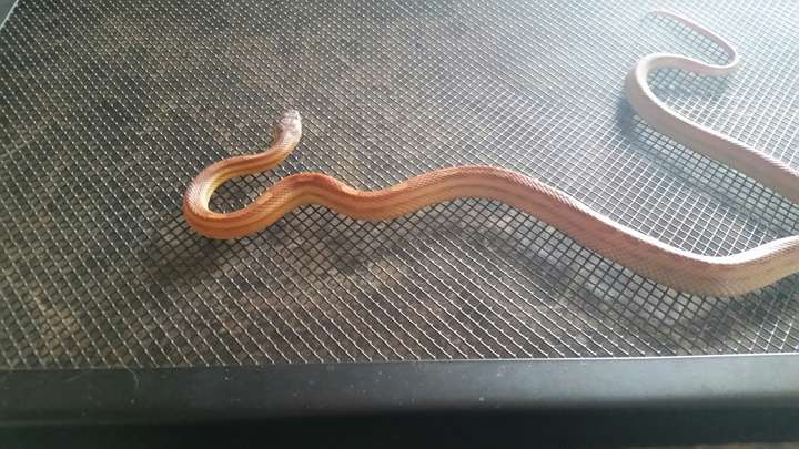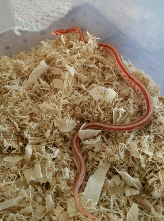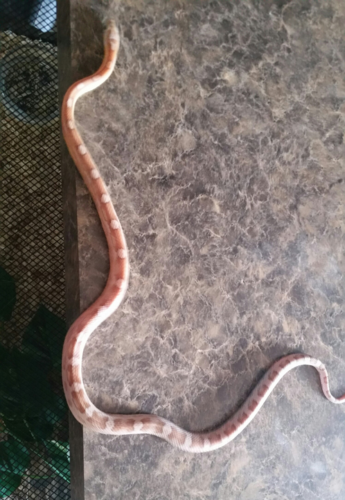 2015 Snow, presumed female based on tail. She is about 26" long and eating one frozen thawed fuzzy weekly. Currently lives in a 40g square tank with UTH.