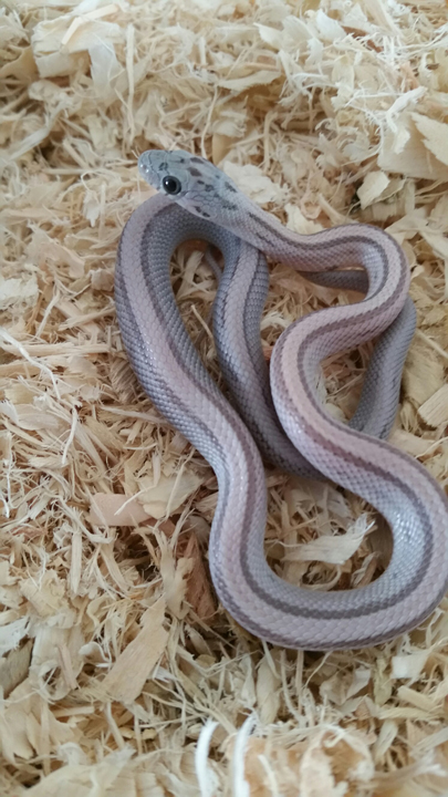 2016 Blue Striped Male – He will be GORGEOUS. Also purchased from Lee. He has shed once and eaten frozen thawed pinks about a dozen times for me with no problems. Fed one every five days.