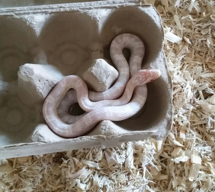 2016 Amel Tessera Female – purchased from Lee Abbott. Pretty little girl. She has shed once and eaten frozen thawed pinks about a dozen times for me with no problems. Fed one every five days.