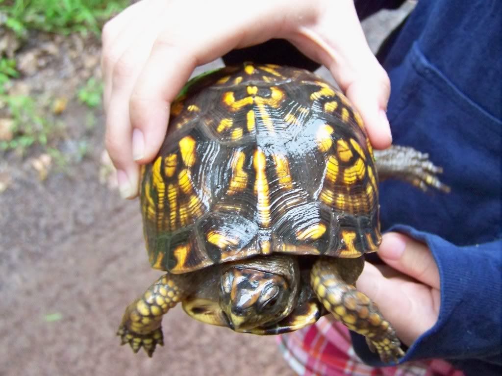 Yesterday Connie and I were taking a walk to take a look at our temporary pond that forms whenever it rains enough. I kept hearing a clunking noise, kind of like banging two coconuts together, and noticed some movement at the edge of the pond. We found two box turtles engaging in some sort of combat, evidently, as they were face to face and would ram towards each other. They were also taking bites at each other, and one of them had blood on his face and the other's shell was obviously chewed up. I know nature really needs to take it's course, but we separated the two idiots before one of them got really hurt.