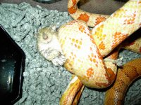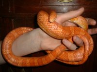 Two years ago I was in my lfs and a customer came in with one of the largest cornsnakes I had ever seen. She had brought it in to be probed but most who "eyeballed" it agreed it was a female. This snake was every bit of 5ft and the girth was tremendous. It was also the tamest and calmest snake I've ever seen. She could wrap it around her waist and it would stay there while she walked around. My question is this. How large can the cornsnake get? I have a picky 5yr old male who is not large at all. A wonderful snake but will never attain the size of that big one. Which, if any, locality corns will possible grow into the beautiful giant that I desire? Is the Okeetee one of the larger specimens? Does a corn grow it's entire life? Can one expect a 10yr old corn to be really large? Does anyone have pics of a really large cornsnake?