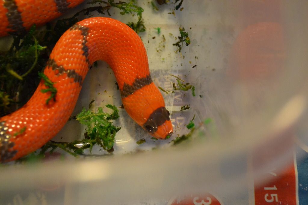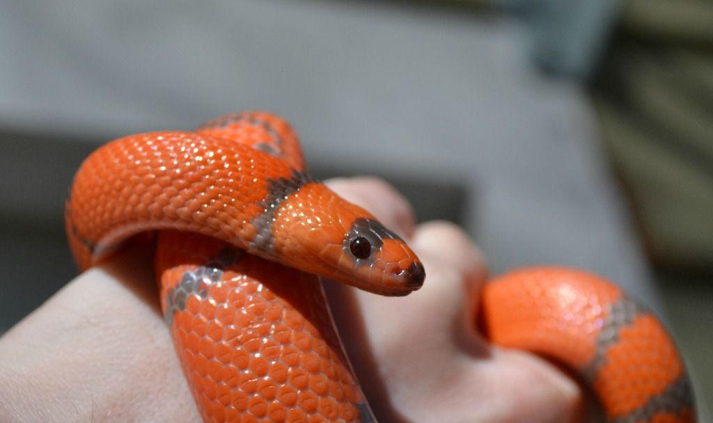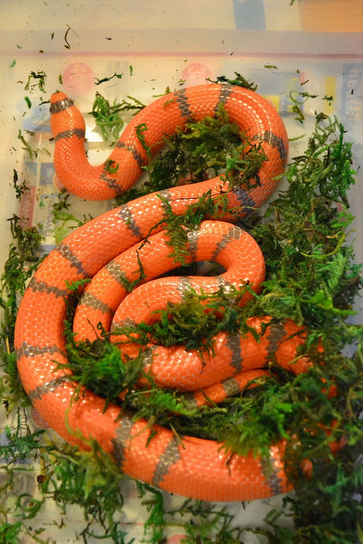 Anyone else out there agree that owning snakes can be great therapy? I have a few conditions that will not be going away and I find that owning snakes actually helps me with my health issues. I owned 6 beautiful snakes before when I was young, and unfortunately the last one I acquired had crypto. Though I did all I could, eventually my entire collection succumbed to it, I was heartbroken and guilt ridden. That and my growing health concerns left me thinking I could never be a good snake mom. Times have changed and my husband is so encouraging and supportive. He bought me a pretty classic corn in November 2015 and that sparked a passion in me. Keeping snakes makes me schedule aware, and gives me reasons to get motivated. And we all know you can't kid yourself with just one, so I have four now. We are picking up two lovely corns in the spring and we just got this beautiful and surprisingly chill Honduran hypo tangerine milk! She is so spoiled she gets her own room