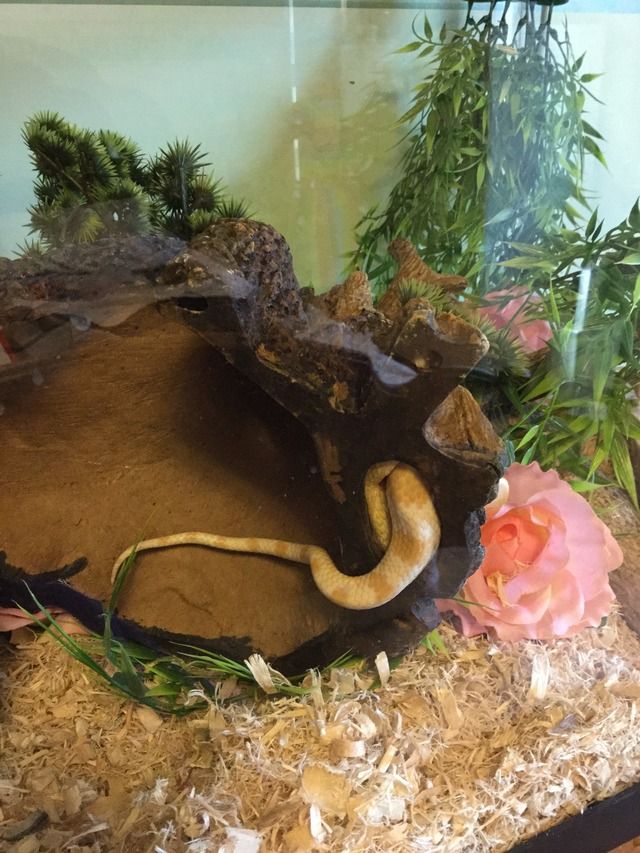 I left her mouse on top of her cave, and turned off the lights, hoping she will smell it and come out. Then... the hot glue gun!