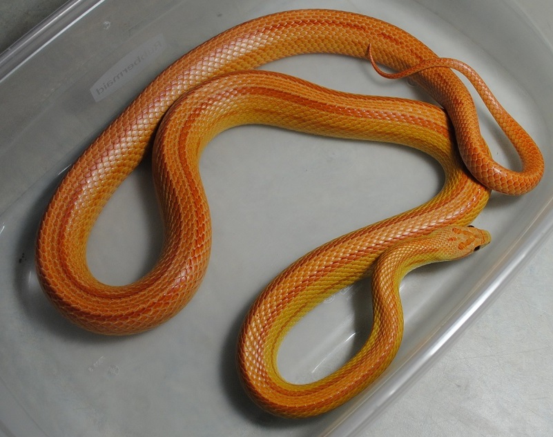 This guy is great. Gorgeous, great disposition, easy feeder, great breeder. I've been breeding him with butter and snow females to produce a wide range of offspring (amel, ultramel, butter, snow, ultramel anery, gold dust, all possible in motley or stripe) I am only letting him go because my projects are taking other directions, and I'll be selling the females as well after they lay their eggs. Price is $150 FIRM plus actual shipping cost, or I am happy to meet up within an hour or two of the Philadelphia area, including Hamburg and Oaks reptile shows. Please feel free to ask any questions. Thanks.