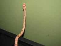 Well, let's see. First, there is Apophis. He's my adult male Snow Corn. He was my first snake and I had no clue what to call him. I did an internet search on names for reptiles and came across Apophis which is actually a play on the name Apep....an Egyptian demon god who was usually depicted as a snake or reptile. It seemed to fit him and so it stuck. Click to view larger pics.